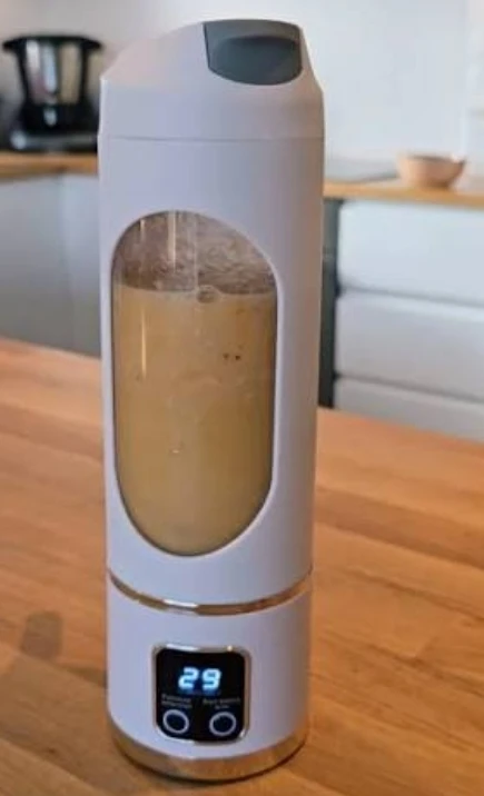 The device is really not bad. It handles small pieces of fruit well. The device struggles quite a bit with frozen food. The battery charge lasts well for more than 10 uses optimally. It can be easily disassembled and cleaned.